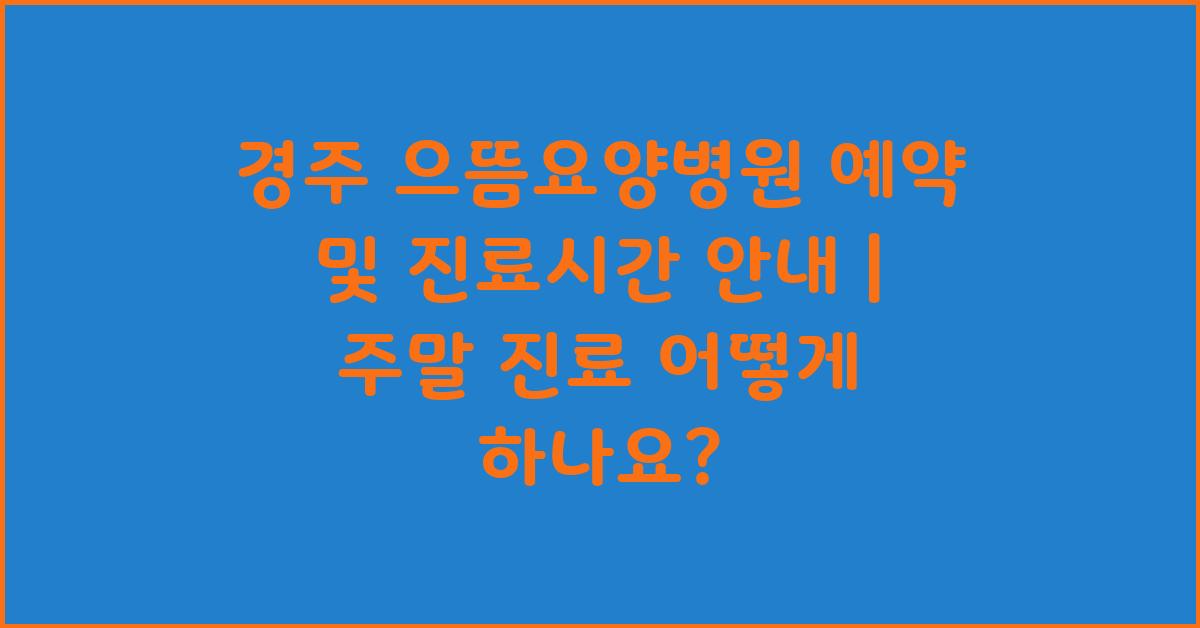 이 글을 통해 여러분이 경주 으뜸요양병원 예약 및 진료시간 안내 | 주말 진료 포함에 대해 충분히 이해하셨기를 바랍니다. 건강에 관한 모든 것, 잊지 마세요! 여러분의 건강은 소중하니까요.