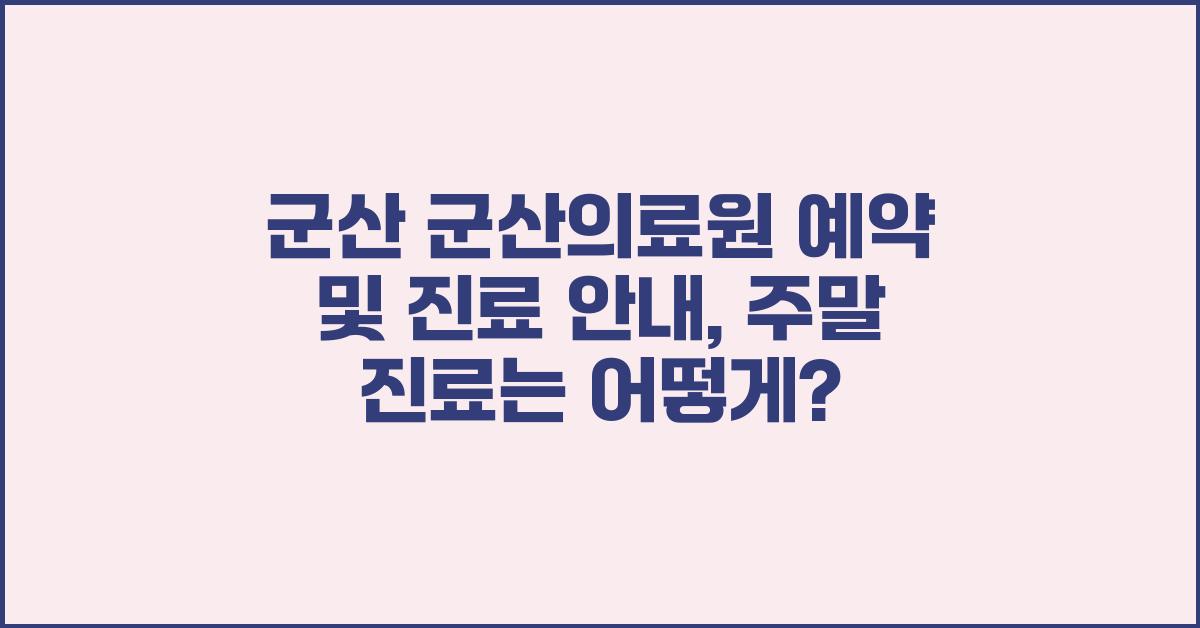 1. 군산 군산의료원 예약은 어떻게 하나요?
