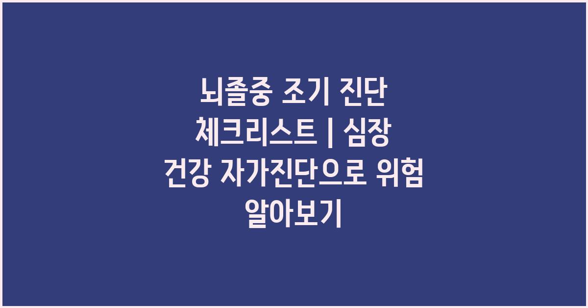 뇌졸중은 전 세계적으로 사망 원인 중 하나로, 사람들의 삶에 큰 영향을 미칠 수 있는 심각한 질병입니다. 특히 조기 진단이 이루어지지 않을 경우, 회복이 어려운 경우가 많습니다. 뇌졸중 조기 진단 체크리스트 | 심장 건강 자가진단을 통해 자신이 어떤 위험에 노출되어 있는지를 알아보는 것이 매우 중요합니다. 그렇게 함으로써 조기 대처가 가능해지고, 장기적인 건강을 유지할 수 있습니다.