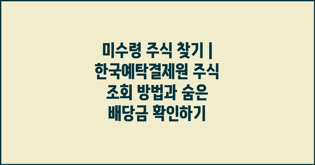 배당금은 주식 투자자들이 기대하는 주된 수익 중 하나입니다. '숨은 배당금'이라고 하면, 자주 잊혀지거나 잘 전달되지 않은 배당금을 의미합니다. 미수령 주식과 연관된 이 배당금을 찾아내는 것은 여러분의 자산을 늘리는 데 긍정적인 영향을 미칠 수 있습니다. 마치 숨겨진 보물찾기 같은 기분이랄까요!