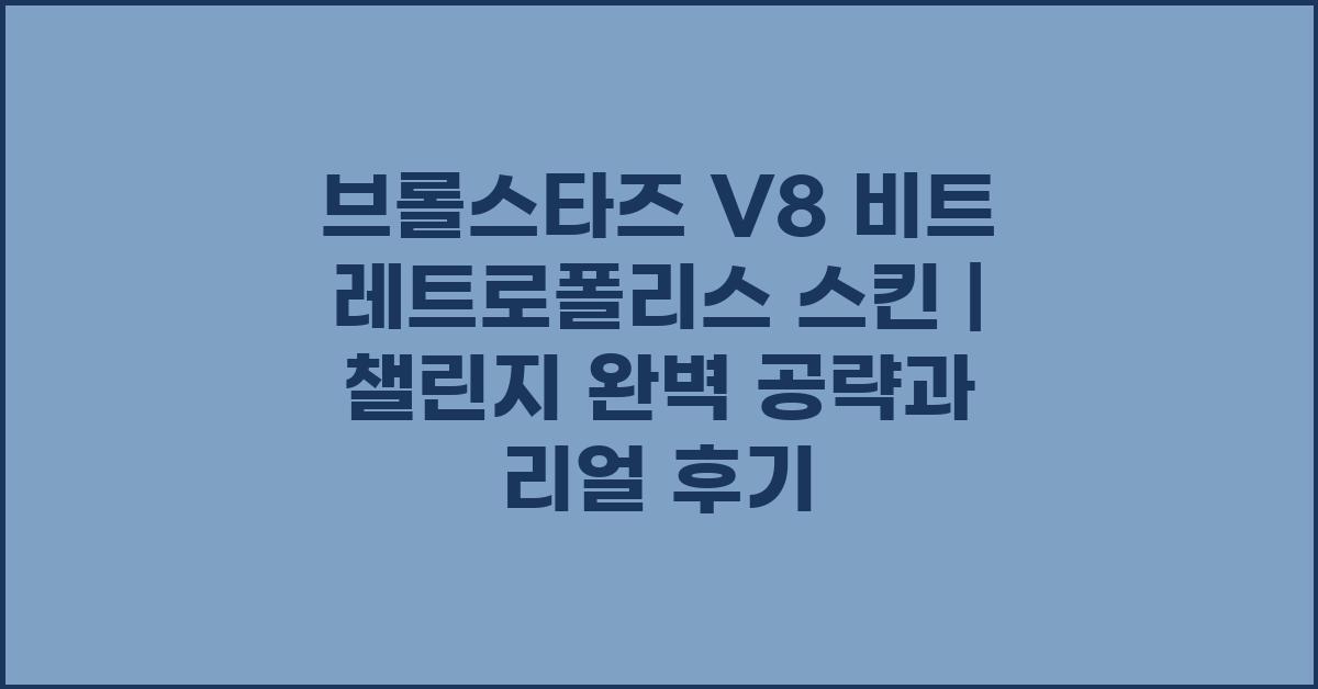 브롤스타즈 V8 비트 레트로폴리스 스킨 | 챌린지 공략 및 후기에 관한 저의 경험담이 많은 분들에게 도움이 되길 바랍니다. 이 스킨을 통해 더 많은 재미와 성공적인 플레이를 경험하셨으면 좋겠어요!