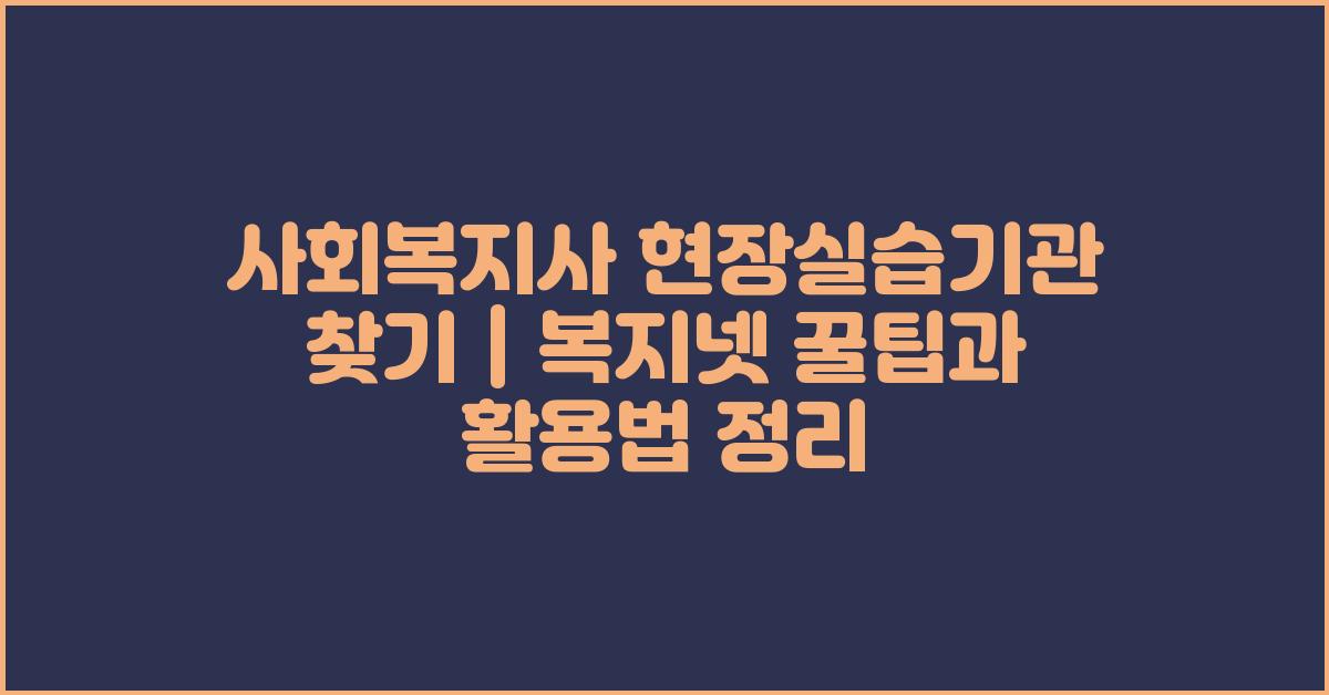 📌 사회복지사 현장실습기관 찾기 | 복지넷의 중요성