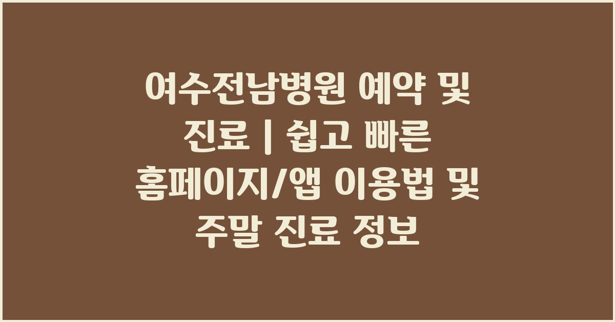 📊 여수전남병원 진료과목 및 주말 진료 시간표