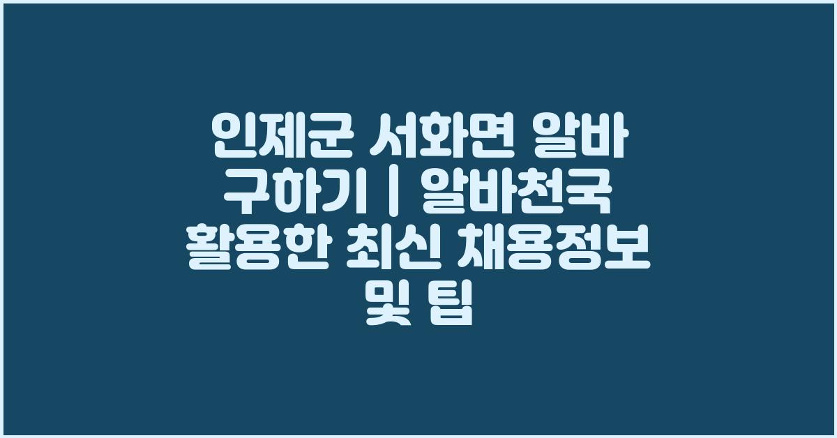 특히 인제군 서화면은 아름다운 자연 환경과 함께 다양한 아르바이트 기회를 제공합니다. 충만한 자연 속에서의 일은 일상에서의 스트레스를 훌쩍 잊게 해줍니다. 알바천국의 최신 채용 정보를 잘 활용하면 여러분의 희망 직종을 찾는 데 큰 도움이 될 것입니다. 제 개인적인 경험으로도 알바로 시작해서 인생의 전환점을 맞이했던 순간이 있었지요. 여러분도 이런 기회를 통해 소중한 인연과 경험을 쌓으시길 바랍니다!