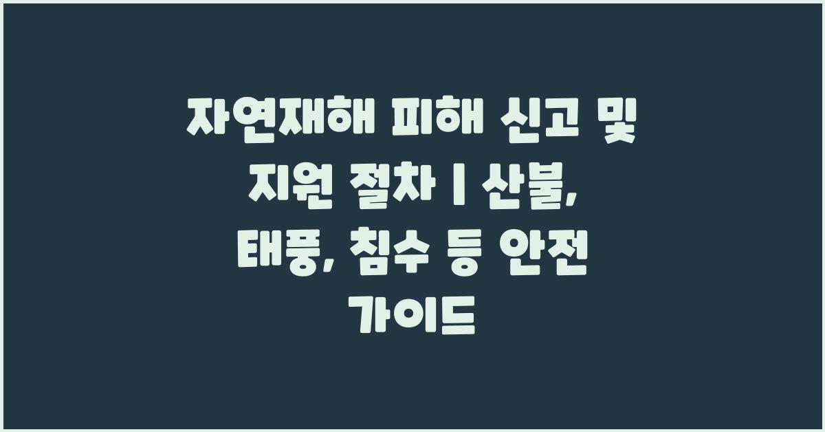 자연재해는 우리의 삶에서 피할 수 없는 부분입니다. 하지만 올바른 대처를 알게 되면, 그 피해를 최소화할 수 있습니다. 여러분의 안전은 가장 중요하며, 이 과정에서 스스로를 지키고 지원 절차를 충분히 활용하세요. 자연재해 피해 신고 및 지원 절차 | 산불, 태풍, 침수 등 대응 방법을 이해하는 것이 여러분의 안전을 지키는 첫걸음인 것을 잊지 마시길 바랍니다.