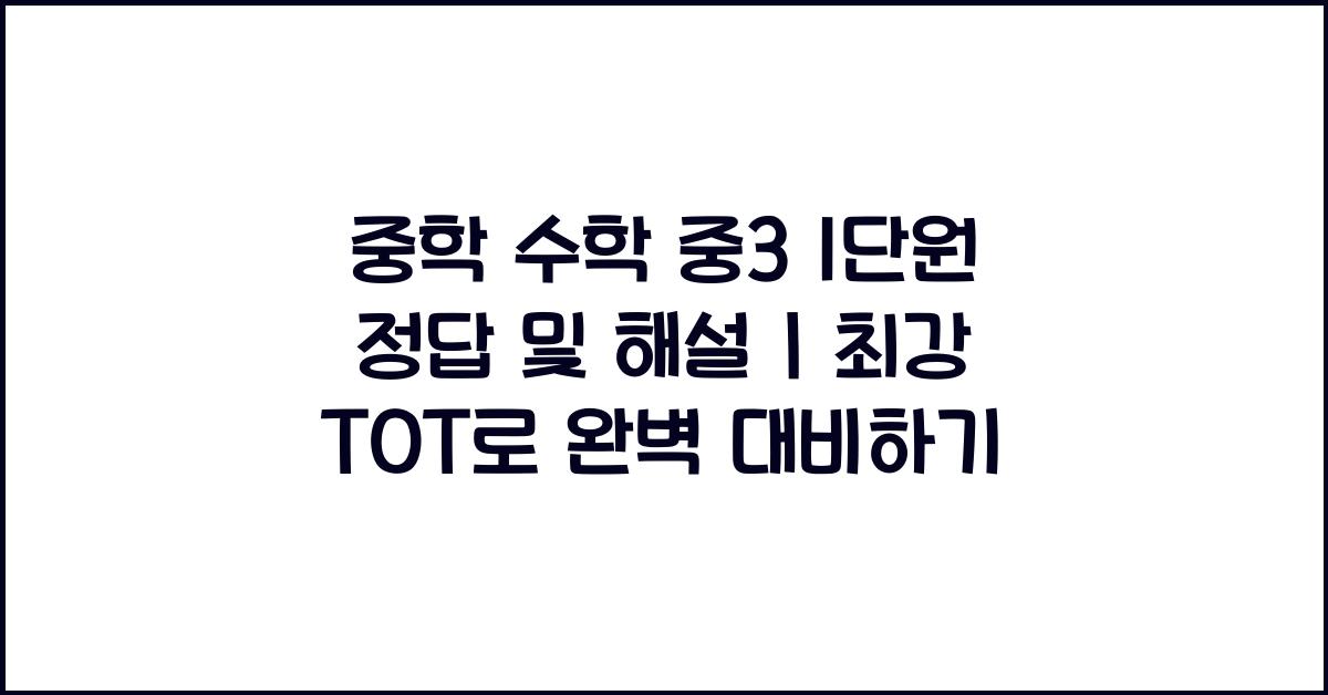 문제를 해결할 때는 항상 문제의 조건을 잘 읽고, 필요한 정보를 구분해야 합니다. 문제를 읽고 나면, 그 안에 숨겨진 정보를 찾는 재미가 있습니다. "이 문제를 해결하기 위해 어떤 개념을 사용할까?" 함께 고민해보겠어요. 예를 들어, '여기서 주어진 숫자를 어떻게 변형해야 할까?'라고 스스로 질문을 던지면 많은 도움이 됩니다. 중학 수학 중3 1단원 정답 및 해설 | 최강 TOT 참고자료를 사용하여 다양한 문제를 접해보세요!