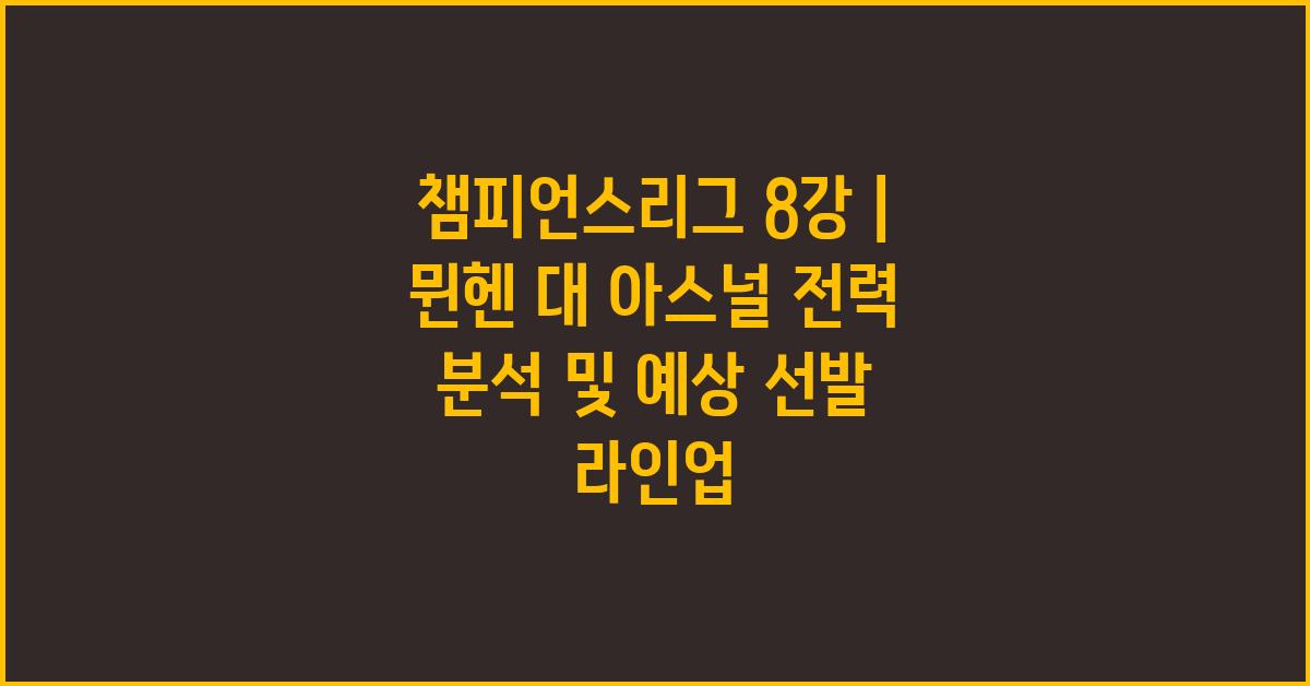 아스널의 기동성이 뛰어난 공격수들이 상대 수비를 뚫는 데 중요한 역할을 하고 있으며, 적절한 타이밍에 침투하는 전략이 필요합니다. 또한, 세트피스 상황에서의 위력도 무시할 수 없습니다. 과거 챔피언스리그에서 보여준 아스널의 집중력은 뮌헨전에서도 여전히 주요한 포인트가 될 것입니다. 챔피언스리그 8강 | 뮌헨 대 아스널 경기 분석 및 예상에서는 아스널의 이러한 전술적 요소들이 어떤 효과를 발휘할지 주목할 필요가 있습니다.