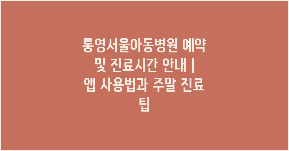 통영서울아동병원 예약 및 진료시간 안내는 정말 간편하고 유용합니다. 앱과 홈페이지를 통해 언제든지 필요한 정보를 쉽게 얻을 수 있으니, 아이의 건강을 생각한다면 미루지 말고 예약해보세요. 치료의 시작은 건강한 예약에서부터니까요!