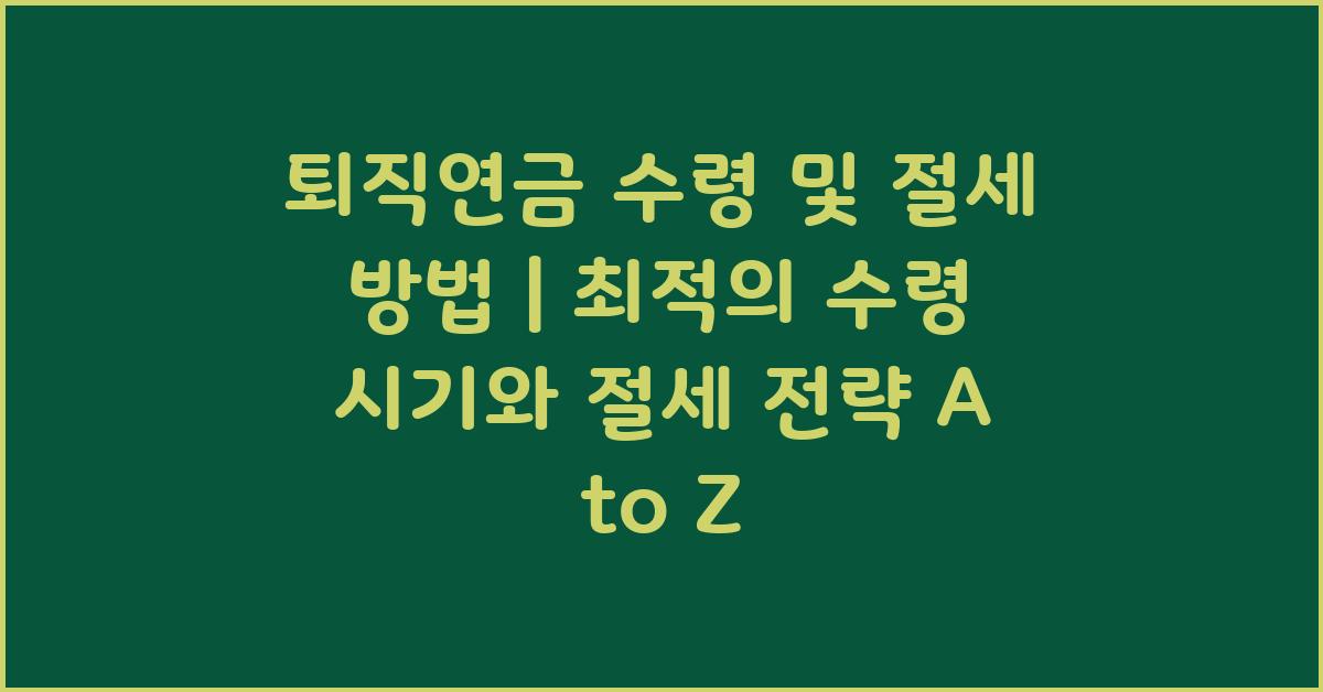 1. 퇴직연금 수령 시기와 세금은 어떤 관계가 있나요?