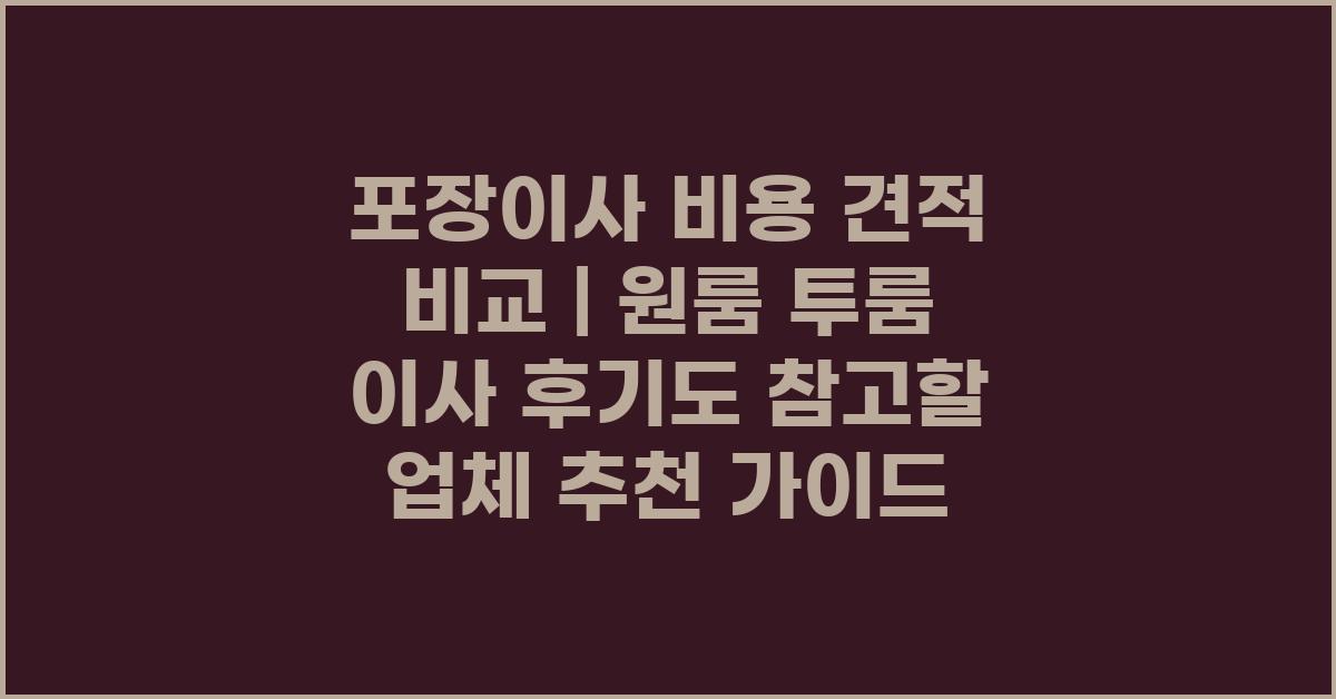 📊 포장이사 비용 견적, 어떻게 비교할까?