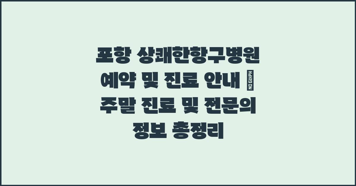 Q1: 포항 상쾌한항구병원 예약은 어떻게 하나요?